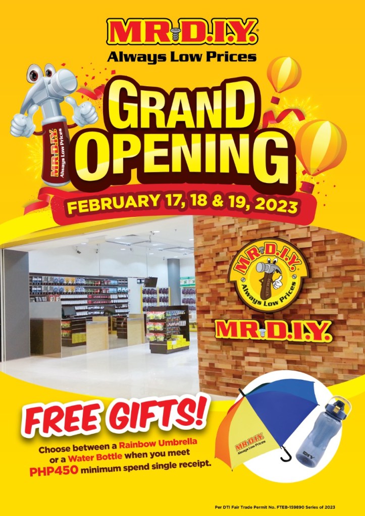 Beginning February 17 until February 19, 2023, awesome freebies and deals are up for grabs at select MR.DIY stores for their Grand Opening Event.